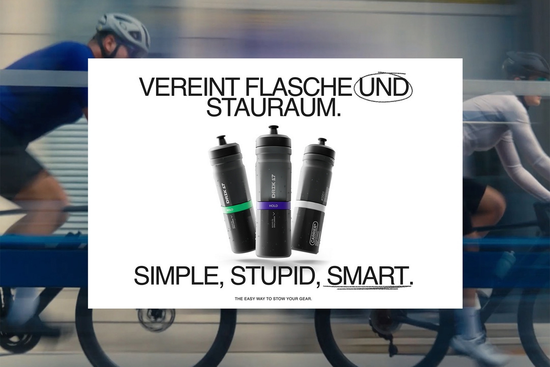 Der DRIK 17 Carrier ist die erste Fahrradflasche mit integriertem Stauraum für Reparatur-Equipment – entwickelt von Radfahrer:innen für Radfahrer:innen. Sie kombiniert Trinkflasche und Werkzeugfach in Einem und ersetzt damit Satteltasche und vollgestopfte Trikottaschen. Der Stauraum im unteren Teil lässt sich individuell bestücken, ganz wie du es brauchst: z.B. mit Multitool, CO₂-Kartusche, Reifenheber und Flickset oder TPU-Schlauch. Auch dein Haustürschlüssel, ein AirTag oder etwas Bargeld für den Kaffeestop finden Platz. Alles dort, wo es hingehört – direkt am Rad. Das reduziert nicht nur unschöne Anbauteile, sondern erhöht auch deine Sicherheit im Falle eines Sturzes. Der DRIK 17 Carrier - Kein Klappern. Kein Baumeln. Kein Kompromiss.