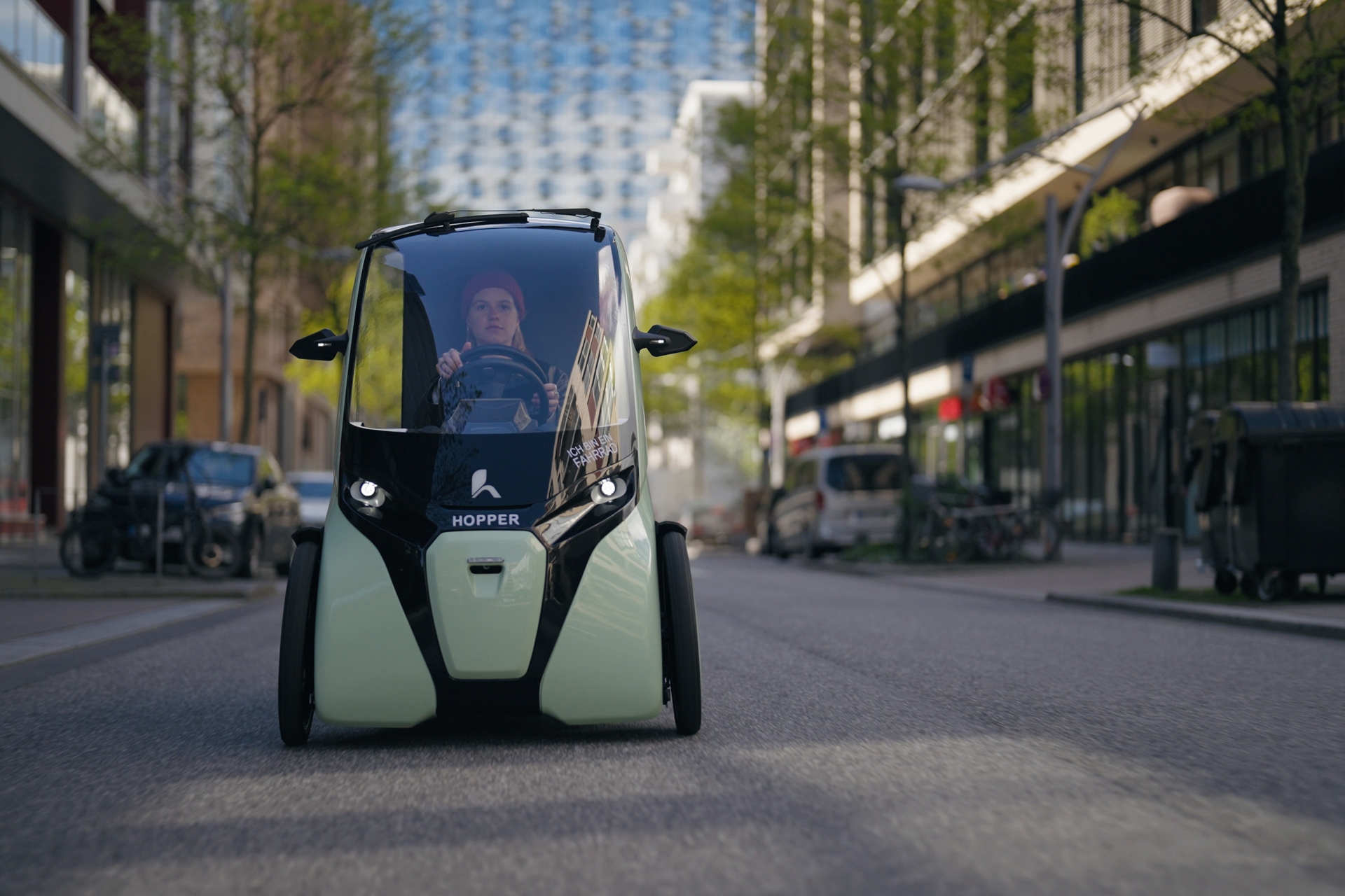 Der HOPPER ist das ideale Fahrzeug für die Stadt! Er ist so flexibel und nachhaltig wie ein klassisches Fahrrad, bietet dir aber deutlich mehr Komfort: Wetterschutz, Platz für zwei Personen, einen abschließbaren Kofferraum und viel Raum für deinen Alltag. So erlebst du urbane Mobilität so unkompliziert wie nie zuvor. Der elektrische Antrieb unterstützt dich kraftvoll und leise. Steigungen, Gegenwind oder längere Strecken verlieren ihren Schrecken. Besonders praktisch: Im HOPPER fahrt ihr zu zweit – ideal für den Arbeitsweg, den Stadtbummel oder spontane Ausflüge. Die geschlossene Bauweise schützt zuverlässig vor Wind und Wetter und sorgt für ein sicheres, stabiles Fahrgefühl. Im abschließbaren Kofferraum sind Einkäufe und Gepäck gut geschützt verstaut. Lokal emissionsfrei, leise und platzsparend – der HOPPER spart Zeit, Stress und Ressourcen. Für alle, die Fahrradfahren lieben und dabei mehr Komfort, Sicherheit und Freiheit wollen.