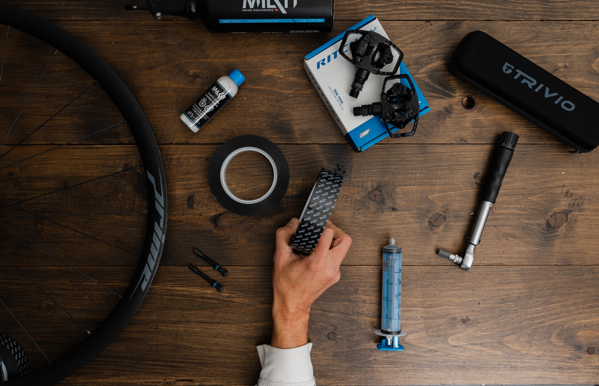 Das milKit Tubeless-System ist schnell, sauber und simpel. Beispielsweise muss zum Messen und Nachfüllen der Dichtmilch nicht mehr die Luft abgelassen werden. Die Reifen können bis zum richtigen Sitz auf der Felge trocken montiert werden - was eine unnötige Sauerei vermeidet! Darüber hinaus wird durch die geschlossenen Gummiklappen am Ventilboden ein Verstopfen durch Dichtmilch effektiv verhindert. milKit Tubeless made easy!